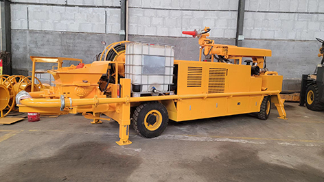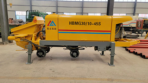 工作原理:當(dāng)液壓系統(tǒng)壓力油進(jìn)入一主油缸時(shí),活塞桿伸出,同時(shí)通過密封回路連通管的壓力油使另一活塞桿回縮。與主油缸活塞桿相連的混凝土輸送活塞回縮時(shí)在輸送缸內(nèi)產(chǎn)生自吸作用,料斗中的混凝土在大氣壓力作用和攪拌葉片的助推作用下通過滑閥吸入口被吸入輸送缸。同時(shí),另一主油缸在油壓的作用下,推動(dòng)主油缸的活塞桿伸出并同時(shí)推動(dòng)混凝土活塞壓出輸送缸中的混凝土,通過滑閥輸送口Y字管進(jìn)入混凝土輸送管。動(dòng)作完成后,系統(tǒng)自動(dòng)換向使壓力油進(jìn)入另一主油缸,完成另一次不同輸送缸的吸、送行程。如此反復(fù),料斗里的混凝土就被吸入和壓送出輸送缸,通過Y型管和出口連接的管道到達(dá)作業(yè)點(diǎn),完成泵送作業(yè)。