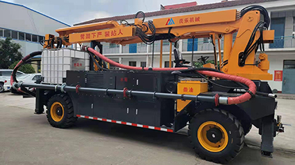混凝土濕噴臺車包括液壓噴射機械手、噴射機(泵)、外加劑及其添加設(shè)備和電纜卷盤、空壓機等,都安裝在同一機械底盤上,是一臺集混凝土泵送、外加劑添加、混凝土噴射等多項作業(yè)于一體的組合設(shè)備?;炷翝駠娕_車的各組成系統(tǒng)在整體設(shè)計上統(tǒng)一考慮了其布局的合理性,做到了易于維修,并具有易于清洗的特點。