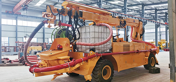 3、同步速凝劑添加采用進(jìn)口軟管泵,液壓馬達(dá)驅(qū)動,電比例流量閥調(diào)節(jié)轉(zhuǎn)速以達(dá)到調(diào)節(jié)流量的目的,液晶顯示和觸屏設(shè)置速凝劑添加比例,且在屏幕和器上均可隨時修改設(shè)置,速凝劑的添加量緊隨砼的泵送量同步變化而保持添加比例按設(shè)定值運行,這些均由可編程控制器控制。由此可實現(xiàn)對速凝劑添加量的控制,以達(dá)到效果,回彈和節(jié)約速凝劑的目的。機器上配有容積為1.0m³的耐腐蝕塑料材質(zhì)的速凝劑容器,速凝劑軟管泵也可從外部容器中抽吸速凝劑,根據(jù)實際情況可方便地進(jìn)行切換。