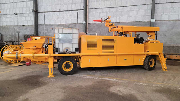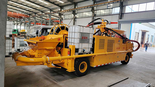 2.車載式濕噴臺車泵送系統(tǒng)能耗少,工作效率高,故障率低,易損件少,維護使用成本低,系統(tǒng)可靠性高,輸送量穩(wěn)定。噴射系統(tǒng)采用雙噴頭噴漿作業(yè),提高了工作效率。