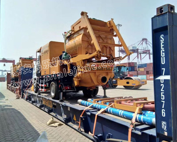 ① 車載泵沒有攪拌系統(tǒng),需要配置滾筒攪拌機(jī)或強(qiáng)制攪拌機(jī),且需要將攪拌機(jī)運(yùn)輸?shù)绞┕すさ?,車載泵開到施工地點(diǎn),再讓車載泵與攪拌機(jī)對(duì)接好,運(yùn)輸、裝卸成本高;